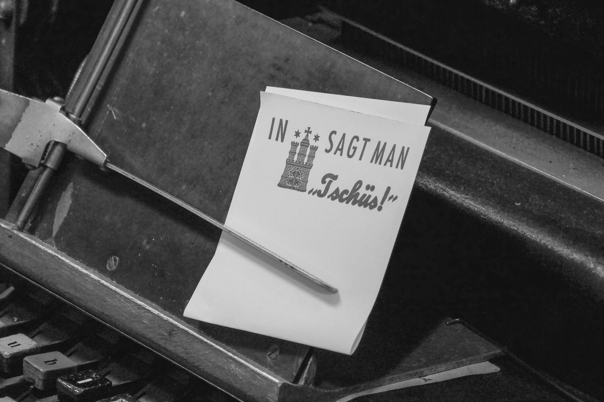 „In Hamburg sagt man Tschüss, das heißt auf Wiedersehn. In Hamburg sagt man Tschüss, beim Auseinandergehn. In Hamburg sagt man Tschüss, das klingt vertraut und schön. Und wer einmal in Hamburg war, der kann das gut verstehn.“ (Hamburger Walzerlied von Hans Peter Landau)